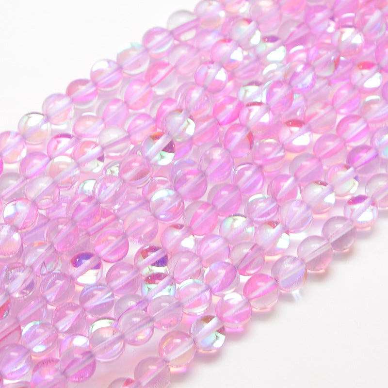 Mermaid Glass Beads Strands, Dyed, Holographic Beads, Half AB Color Plated, Round, Pink