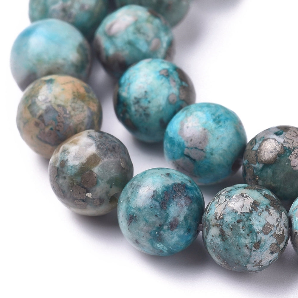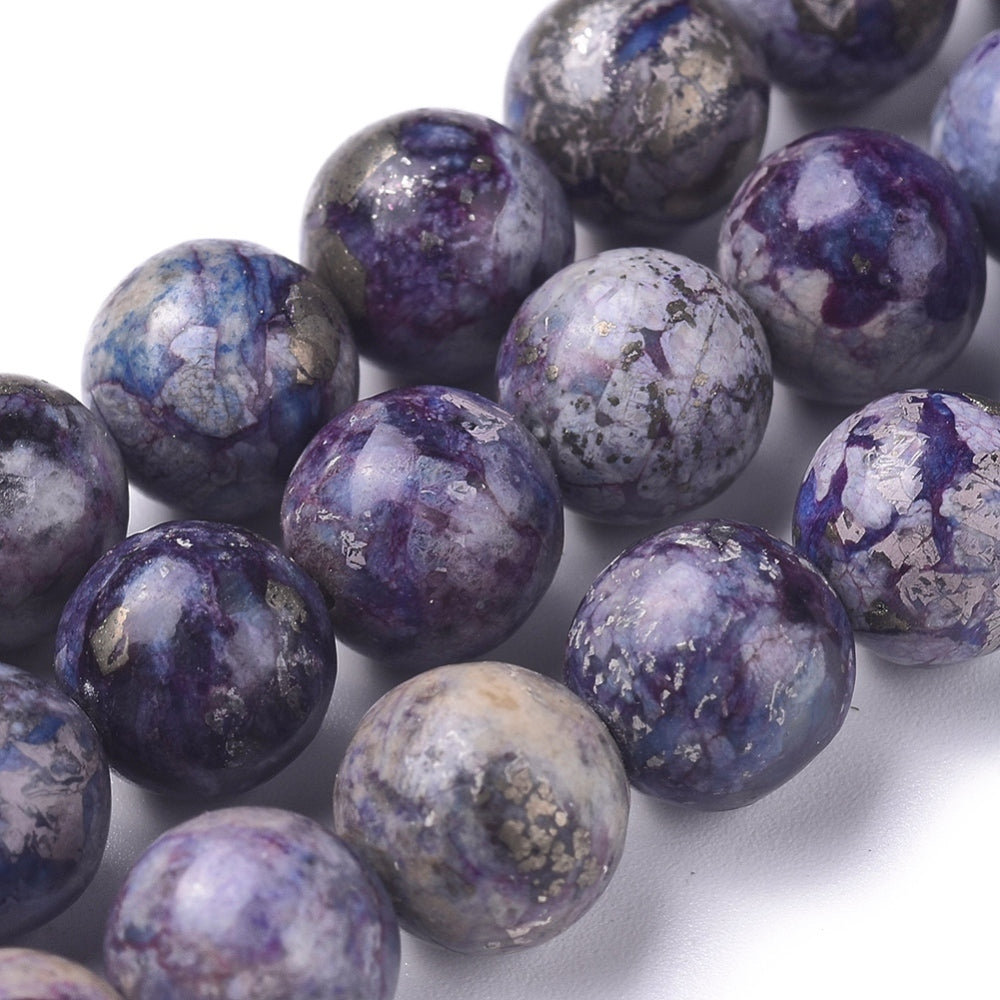 Natural African Pyrite Beads Strands, 8mm Purple and Green