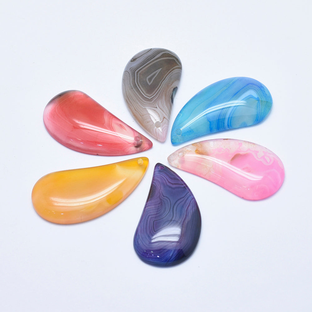 Natural Agate Pendants, Dyed, Drop, Mixed Color