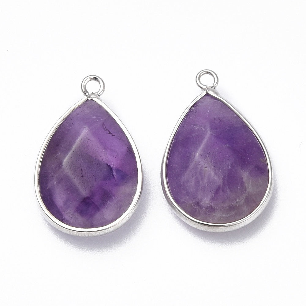 Natural Amethyst Faceted Teardrop Pendants 2 Pack