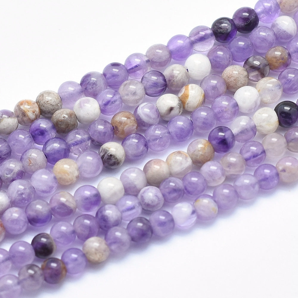 Natural Chevron Amethyst Beads Strands, Round, 4mm