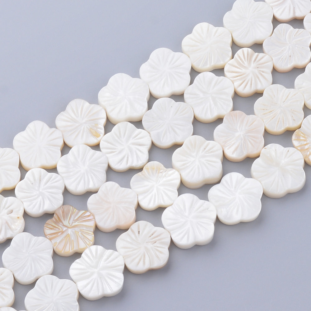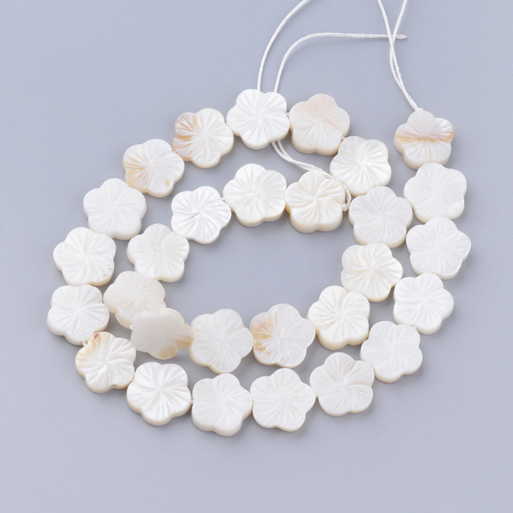 Natural Freshwater Shell Bead Strands, Flower, Creamy White