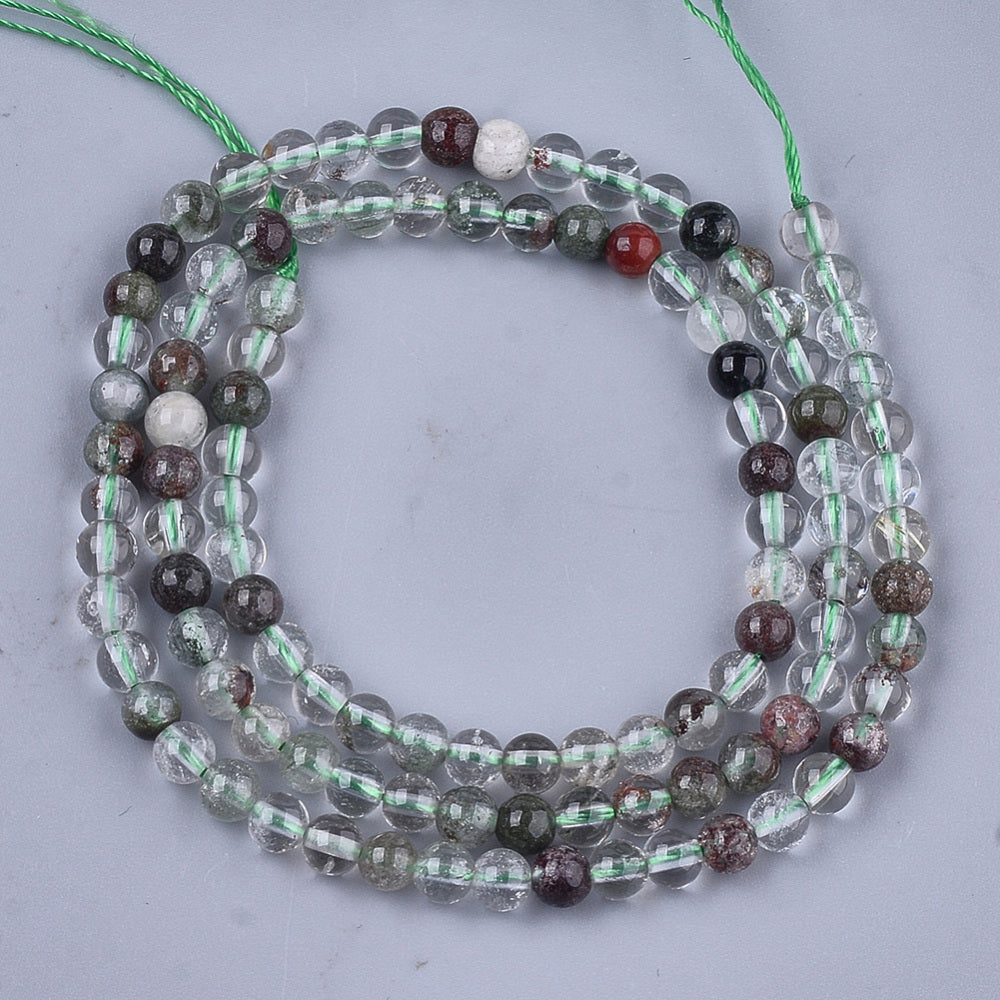 Natural Green Lodolite Quartz/Garden Quartz Beads Strands, Round,