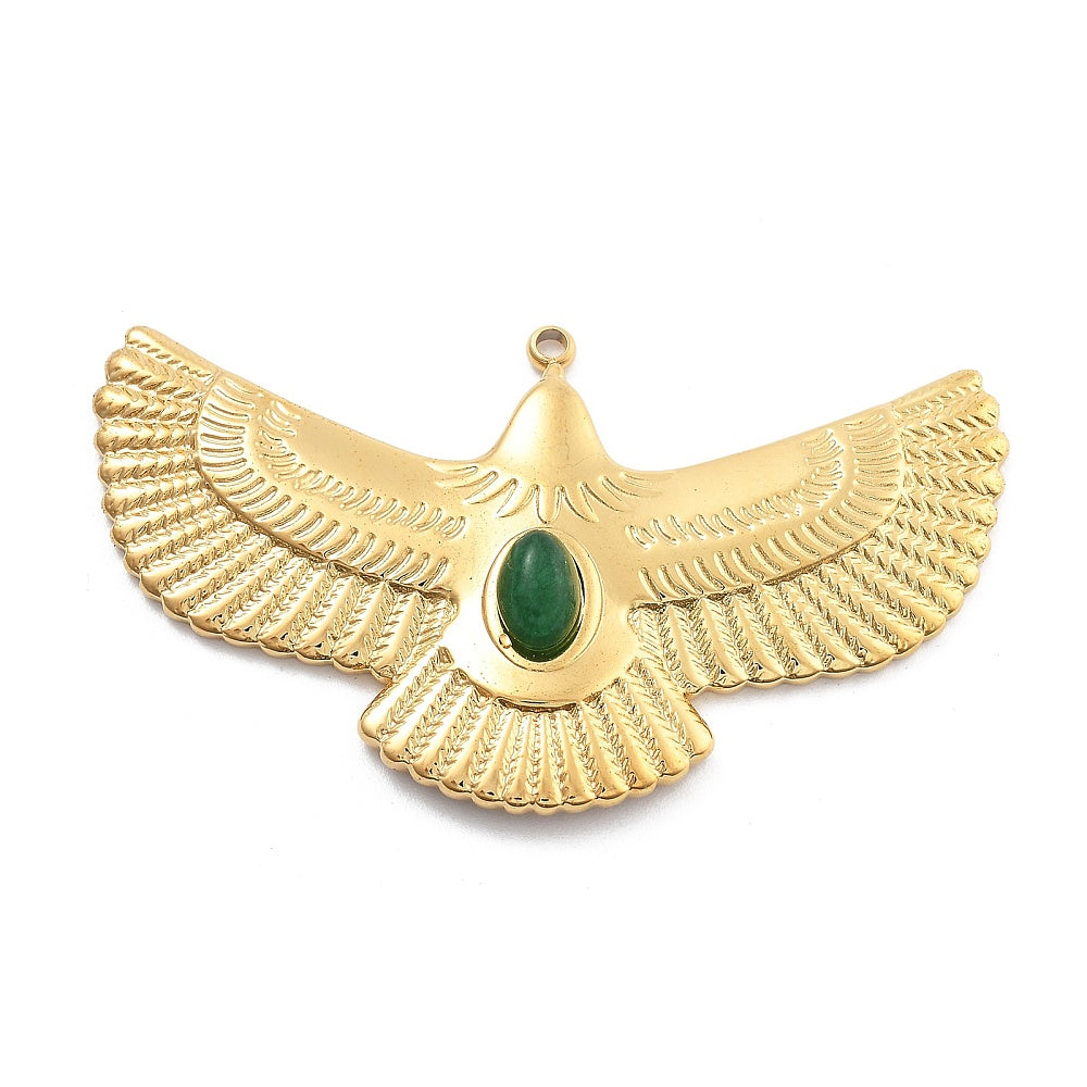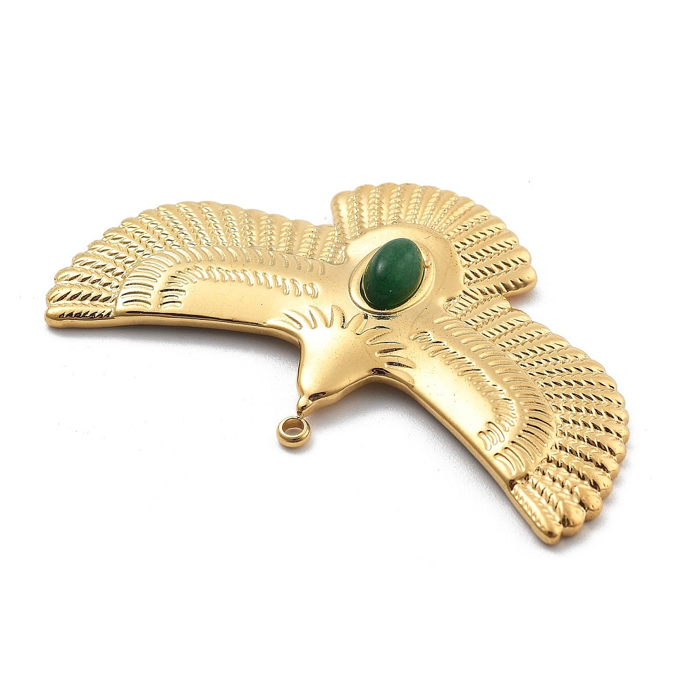 Natural Jade Pendants, PVD Vacuum Plating 304 Stainless Steel Eagle Charms, Real 18K Gold Plated,