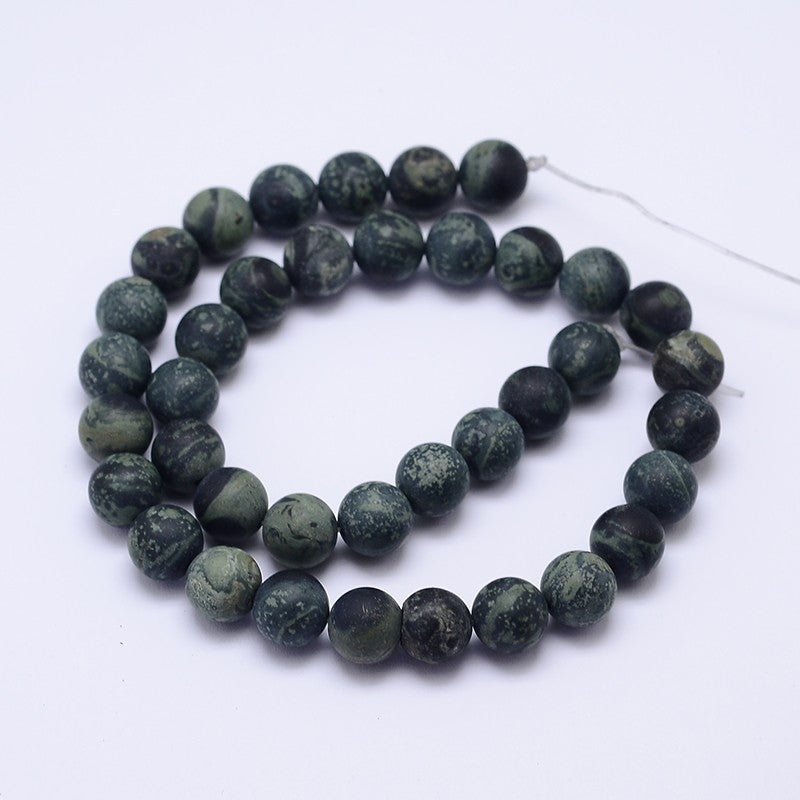 Natural Kambaba Jasper Beads Strands, Frosted, Round,