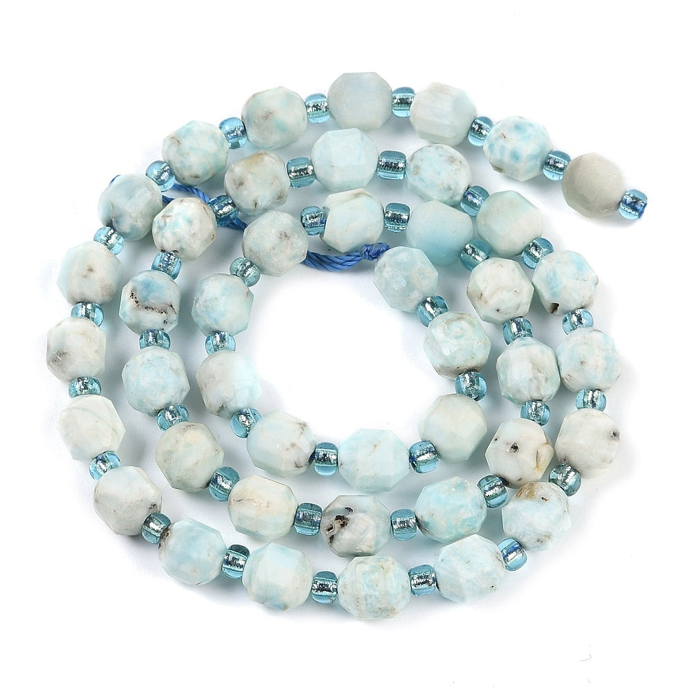 Natural Larimar Beads Strands, Faceted, Bicone, Double Terminated Point Prism Beads, 6mm