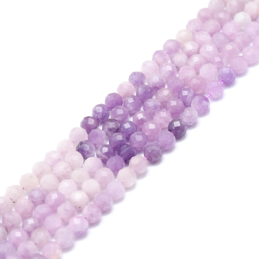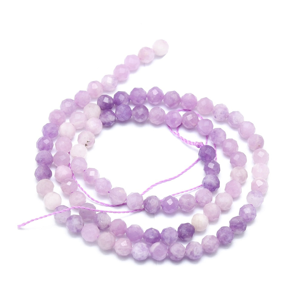 Natural Lepidolite/Purple Mica Stone Beads Strands, Faceted, Round, 4mm