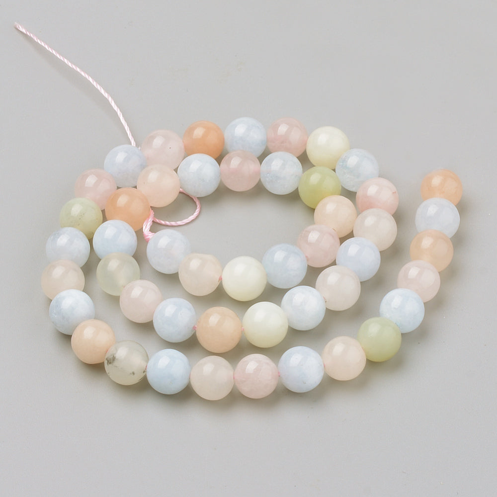 Natural Morganite Beads Strands, Round Size: about 8mm in diameter, 7.5mm thick, hole: 1mm; about 46~49pcs/strand, 15.5 inch.