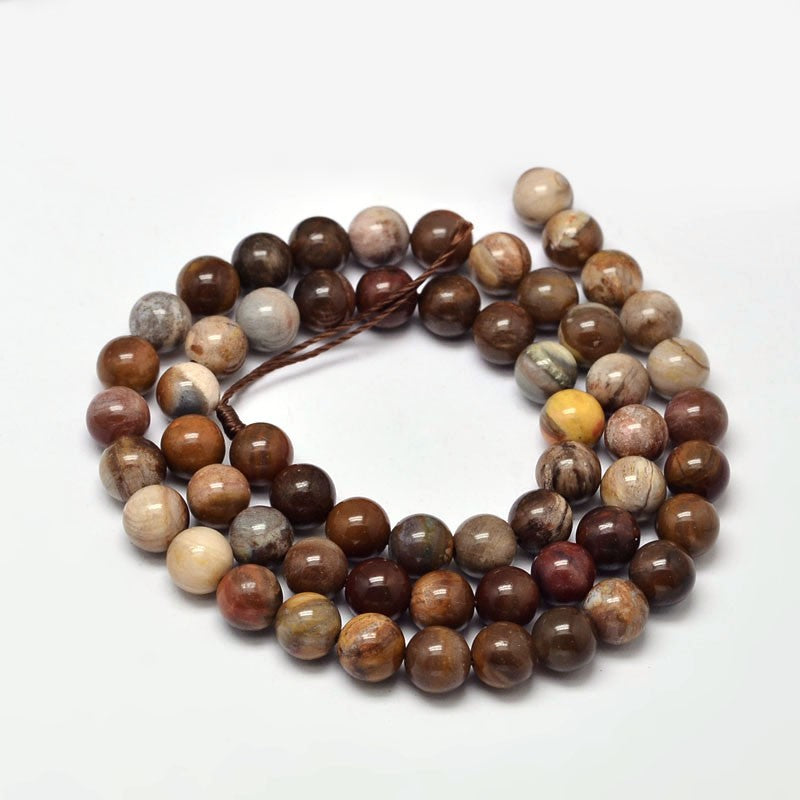 Natural Petrified Wood Round Bead Strands Asst Sizes