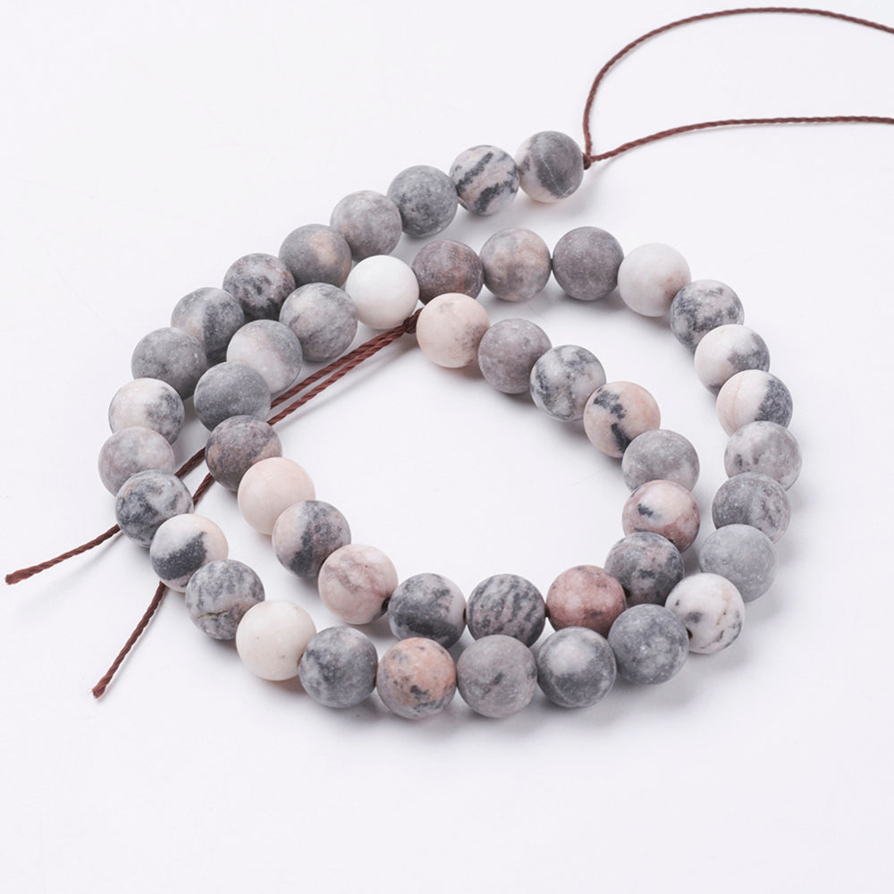 Bring natural texture and gentle grounding energy to your designs with these Natural Pink Zebra Jasper Frosted Beads. Featuring an elegant mix of pink, gray, and black tones, each strand captures the stone’s organic beauty — perfect for creating jewelry that’s earthy, balanced, and effortlessly stylish.