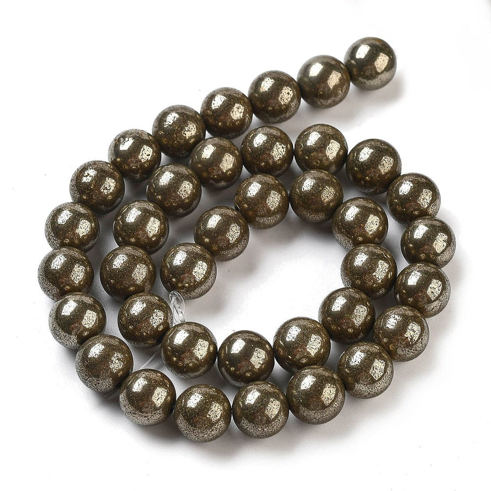 Natural Pyrite Round Beads Strands, Grade A 10mm