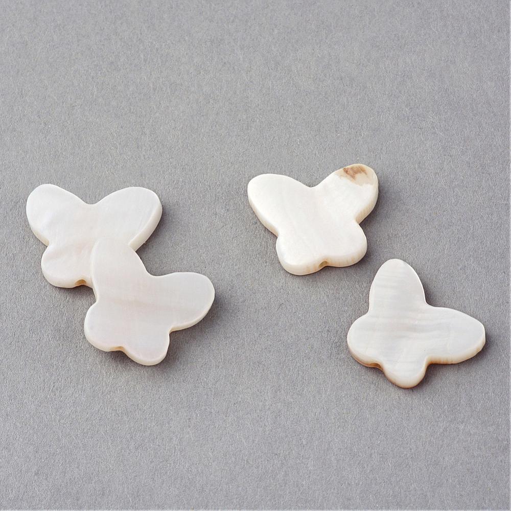 Natural Sea Shell Beads, Butterfly, Creamy White 5 Pack