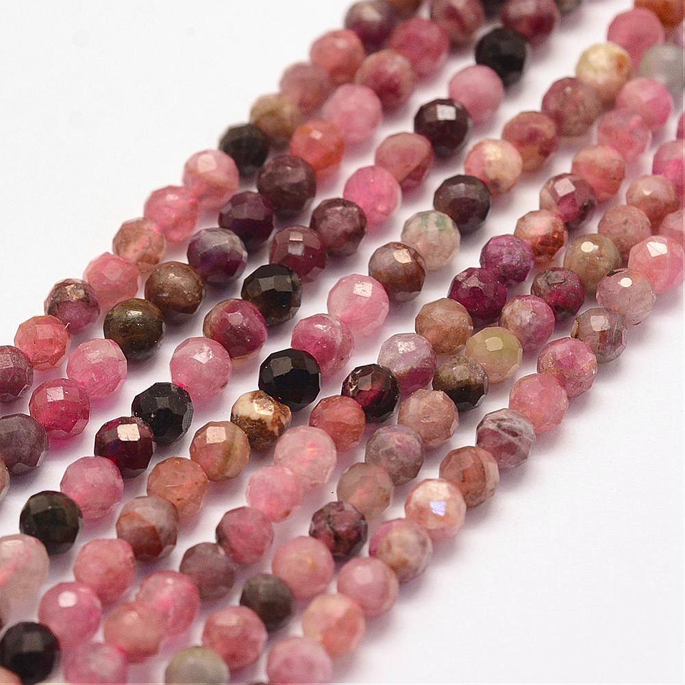 Natural Tourmaline Bead Strands, Faceted, Round 4mm