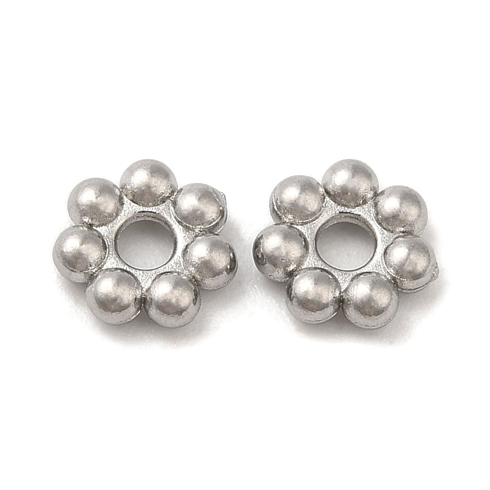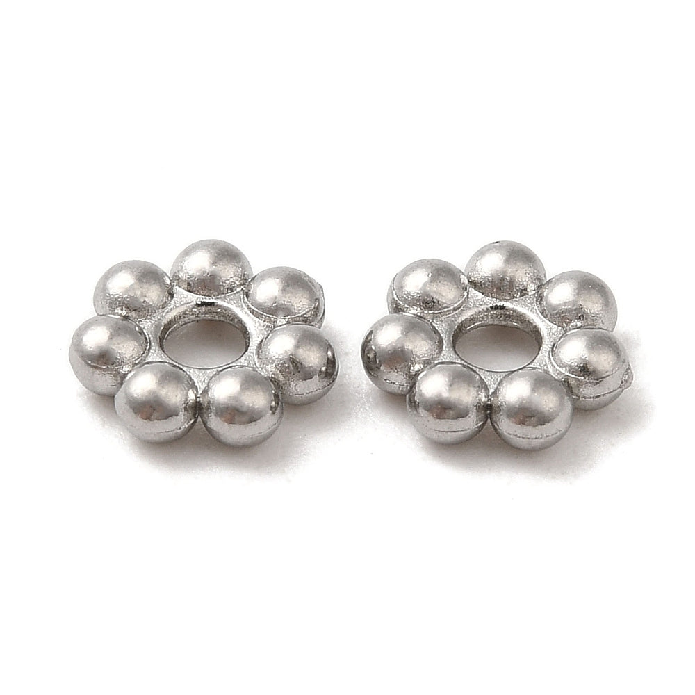 Non-Tarnish 304 Stainless Steel Spacer Beads, Flower, Granulated Beads, Stainless Steel Color 10 Pack