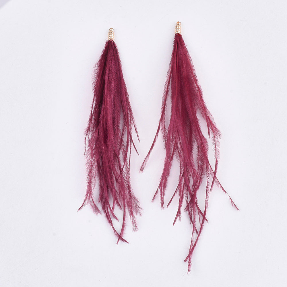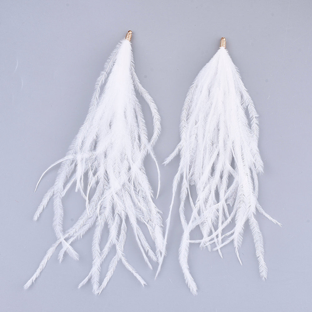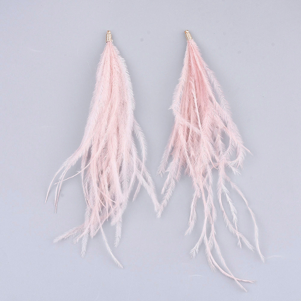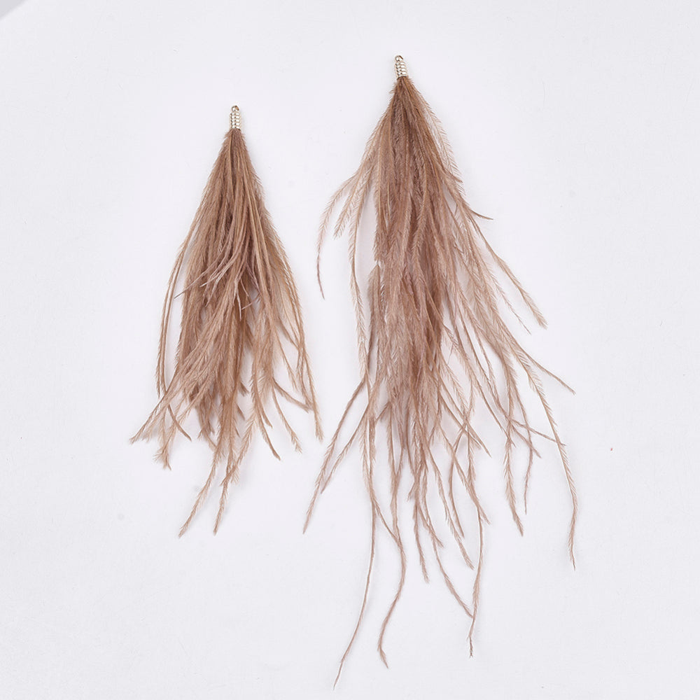 Feather Tassel Big Pendant Decorations, with Brass Findings, Golden,