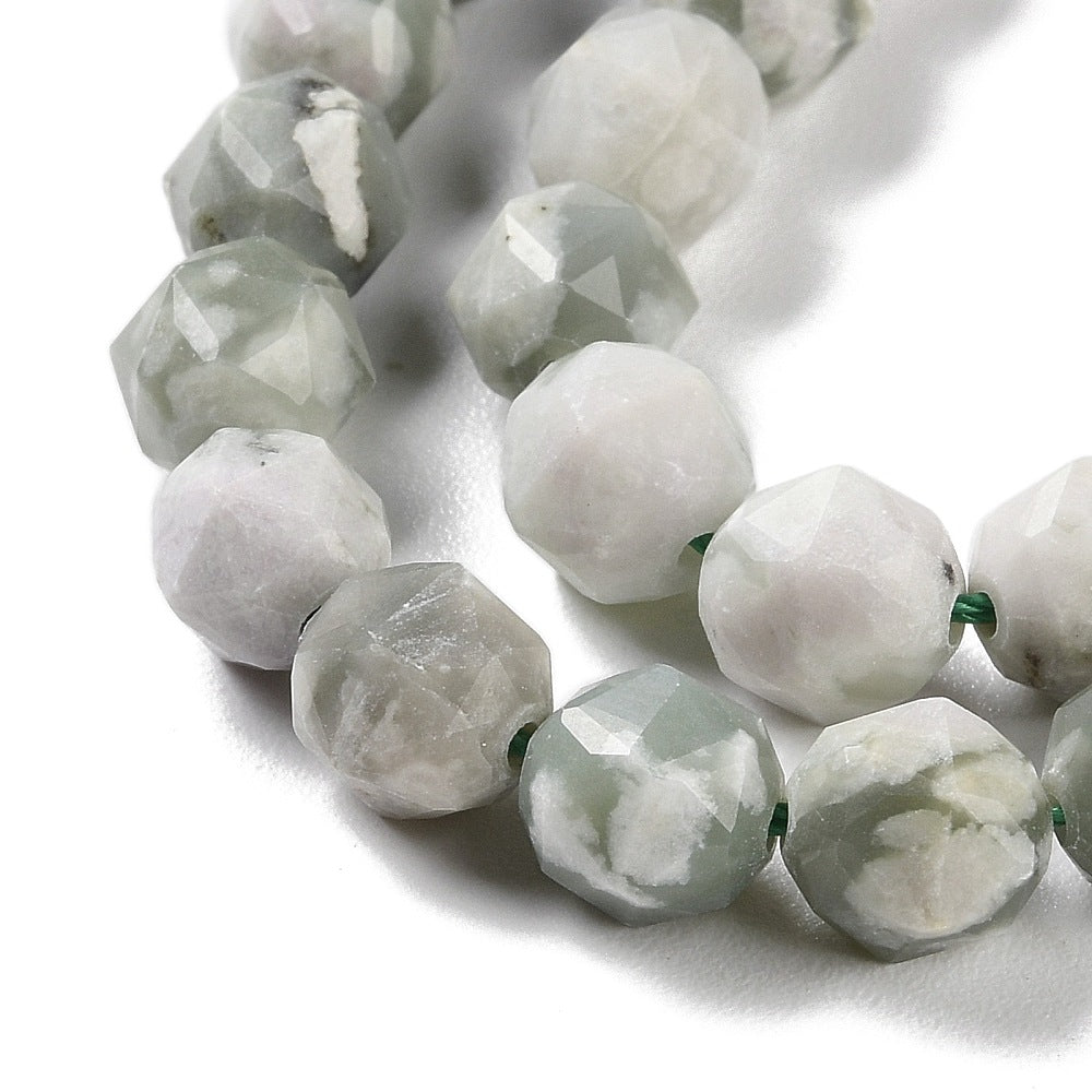 Natural Peace Jade – soft white and gray marbled stone Faceted Double Heart & Star Cut – adds shimmer and dimension 7–8.5mm Size with 0.8–1mm Hole – fits most stringing materials ~48–50 Beads Per Strand – strand length approx. 15.16–15.55” (38.5–39.5cm) Perfect for Calming, Healing Jewelry – ideal for bracelets, malas, or statement necklaces Metaphysical Properties – promotes peace, emotional balance, and tranquility