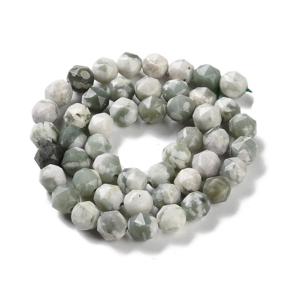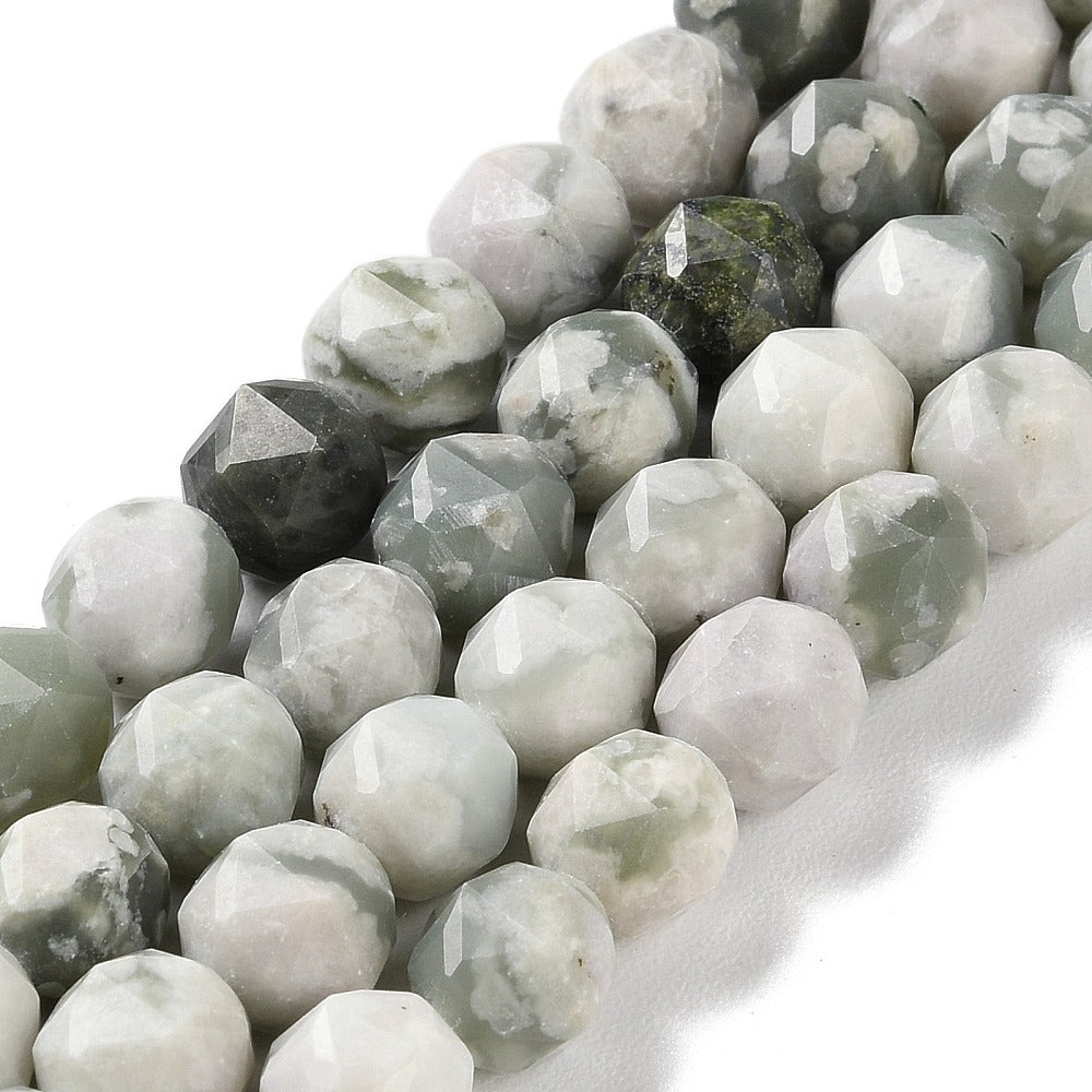 Shop Natural Peace Jade faceted double-heart & star-cut beads (7–8.5x7.5–8mm) at The Pink Bead Shop. Each 15.16–15.55” strand contains ~48–50 sparkling beads with 0.8–1mm holes — perfect for peaceful, healing, and meditation jewelry designs.