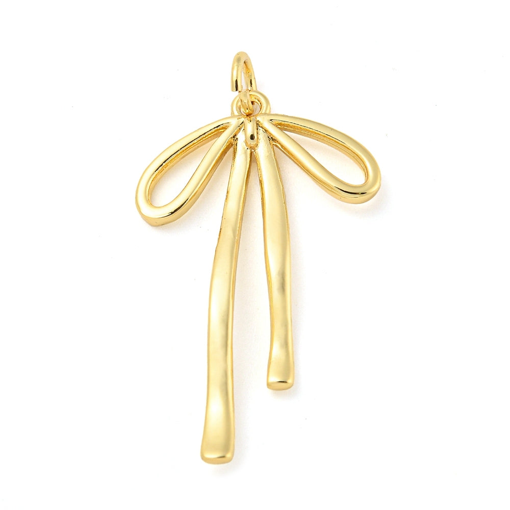 Rack Plating Brass Pendants, Cadmium Free & Lead Free, Long-Lasting Plated, with Jump Ring, Bowknot, Real 18K Gold Plated