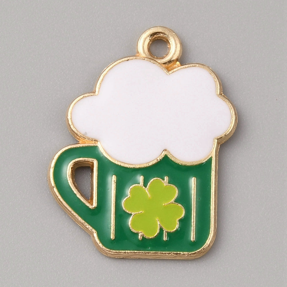 Saint Patrick's Day Alloy Enamel Pendants, Golden, Size: about 18.5mm wide, 2 Pack