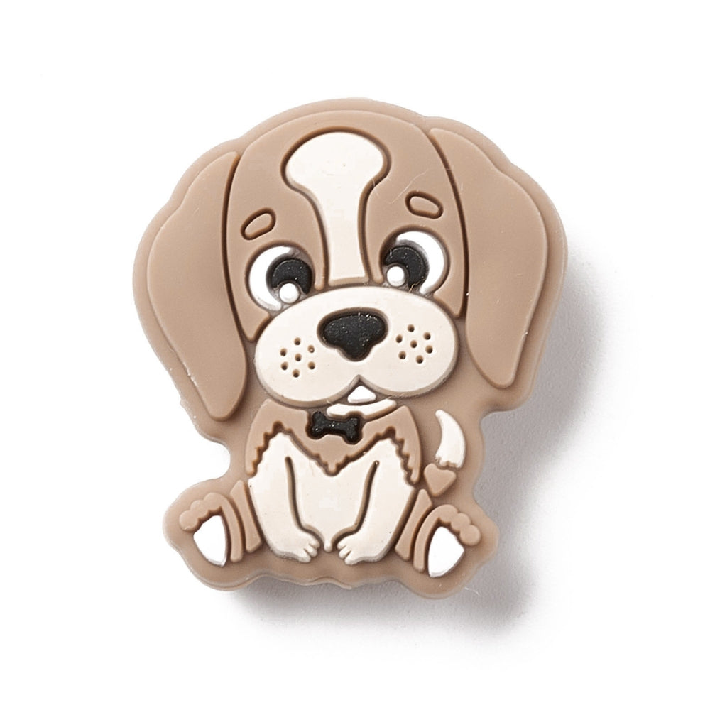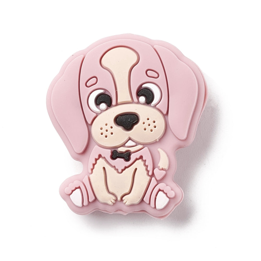 Silicone Focal Beads, Dog, Beige, Grey, Pink