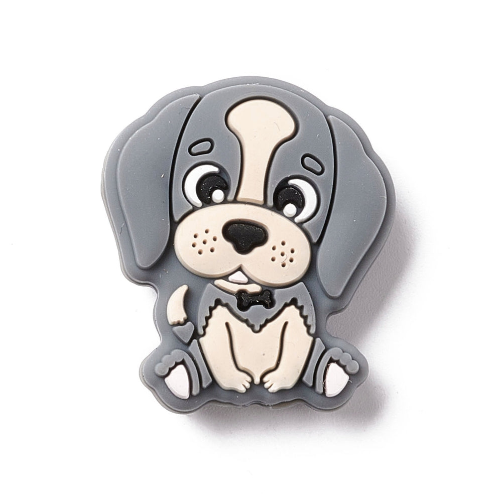 Silicone Focal Beads, Dog, Grey, Beige, Pink