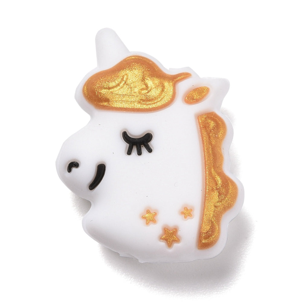 Silicone Focal Beads, Unicorn, Goldenrod & Pink
