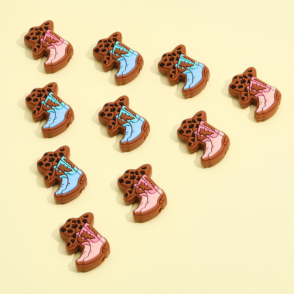 Western Boots: about 23mm wide, 27mm long, 9mm thick, Hole: 3mm, 2 colors Pink & Brown