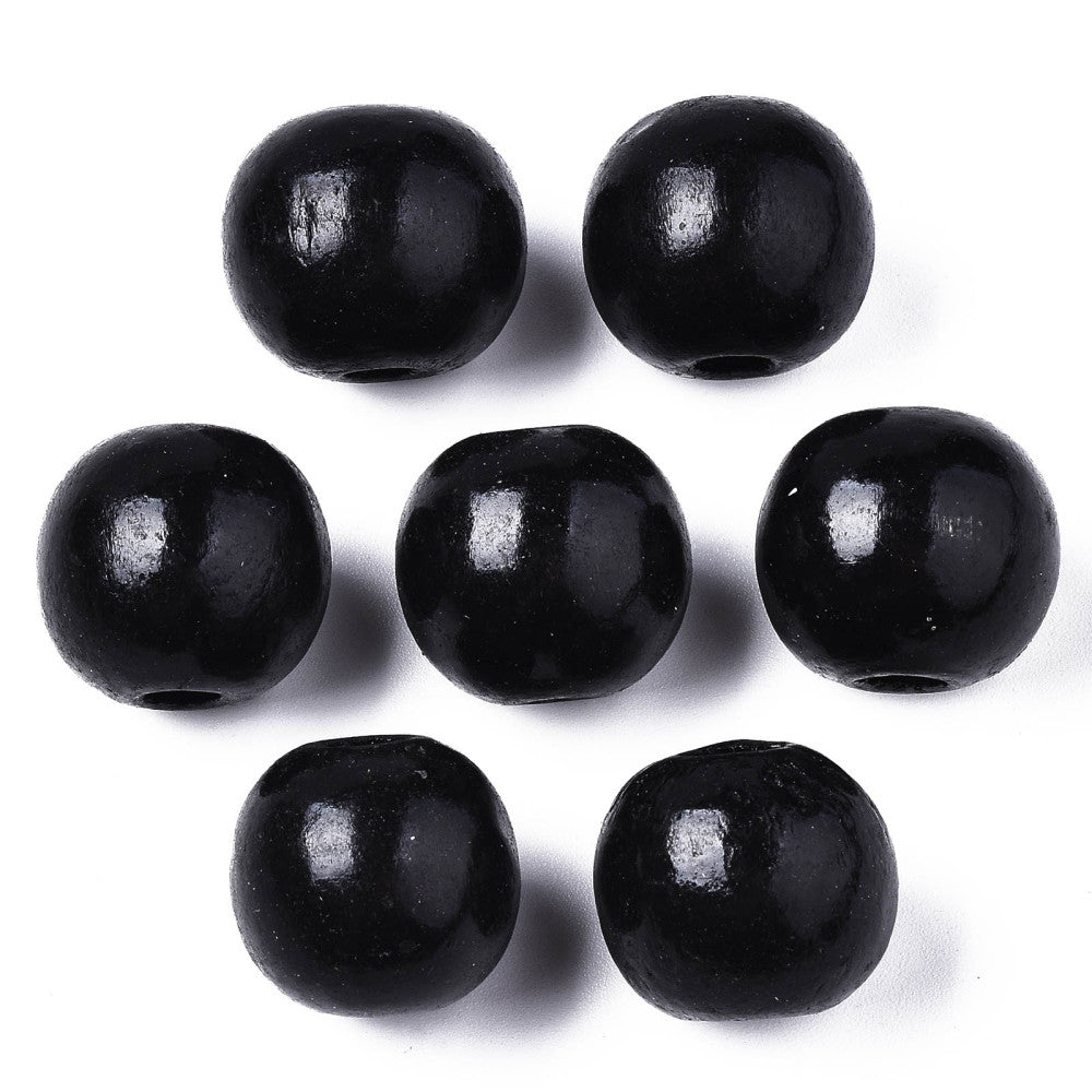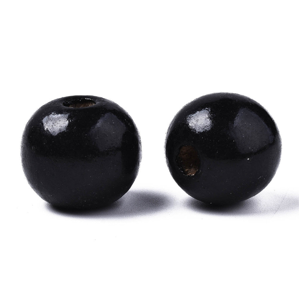 Spray Painted Natural Wood Beads, Macrame Beads Large Hole, Lead Free, Round, Black