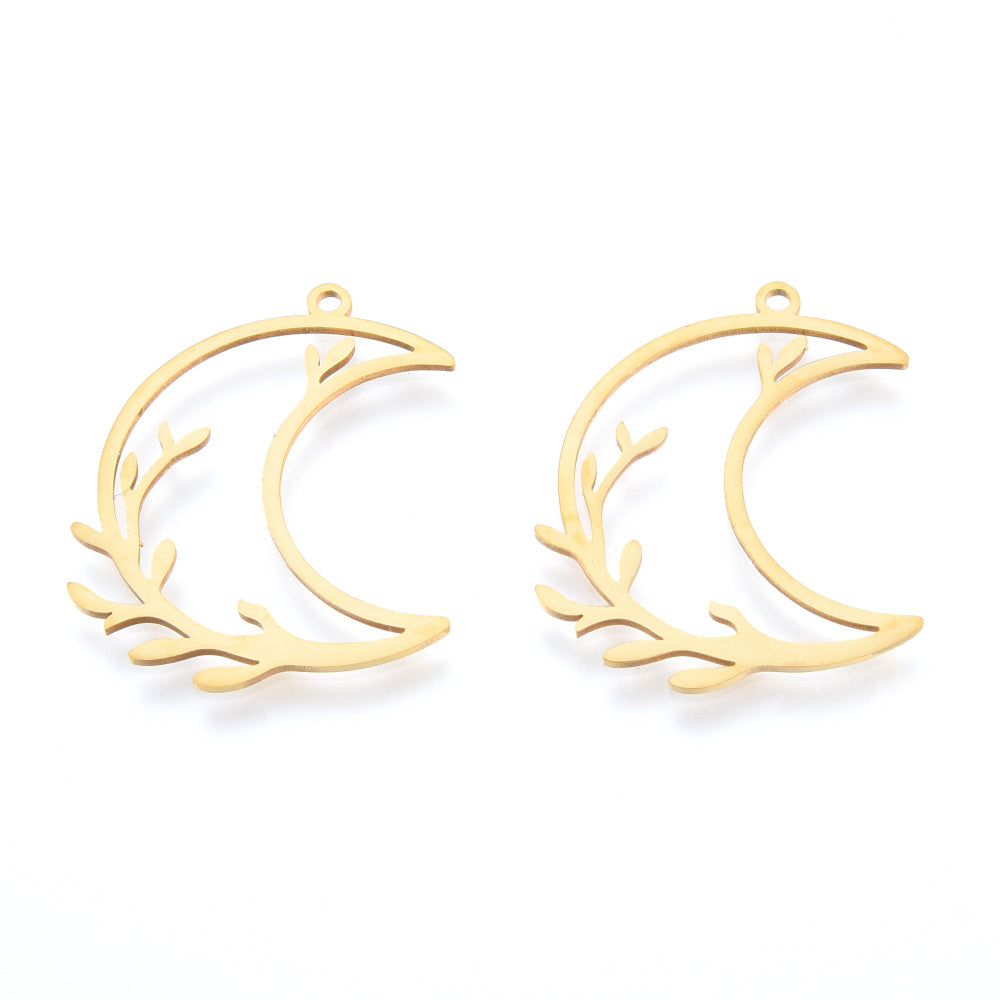 201 Stainless Steel Pendants, Laser Cut Pendants, Moon, Stainless Steel Color Gold Color