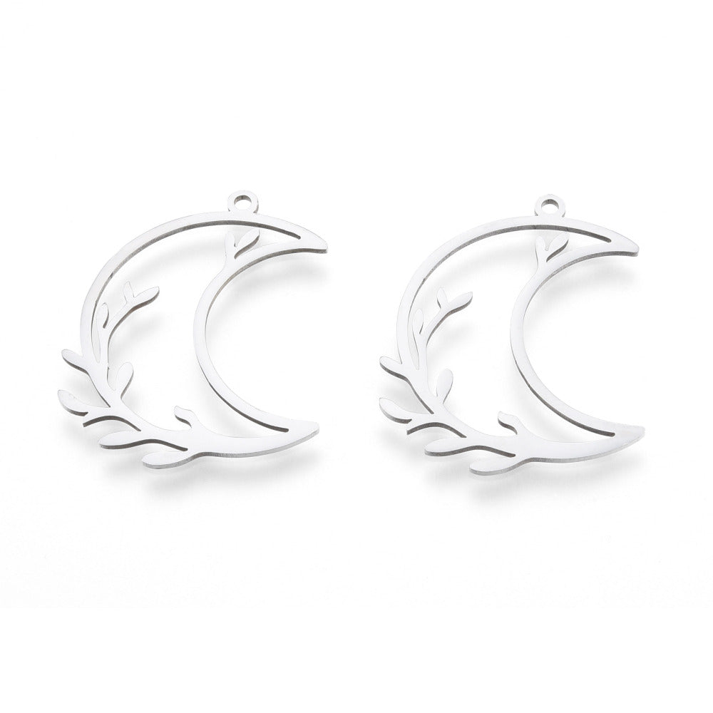 Stainless Steel Laser Cut Moon Pendant Gold & Silver