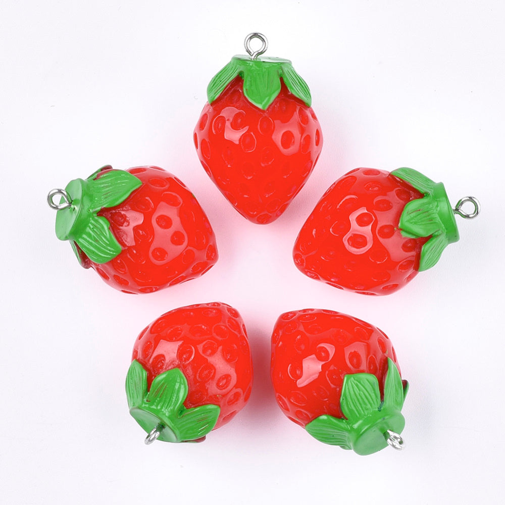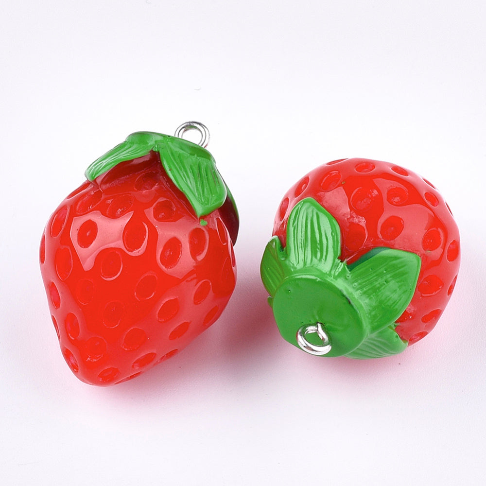 Resin Pendants, with Platinum Tone Iron Findings, Imitation Food, Strawberry, Red 2 PACK