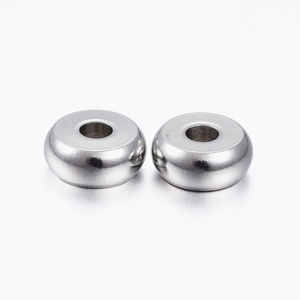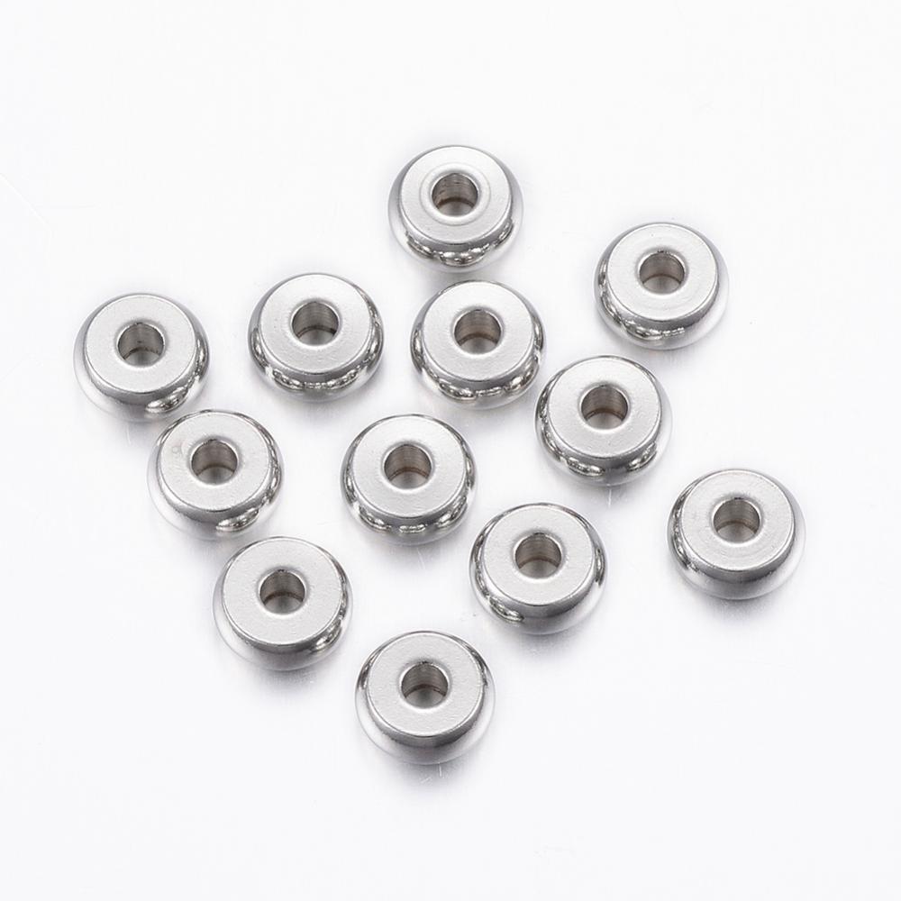 Tarnish Resistant 201 Stainless Steel Spacer Beads, Flat Round, Stainless Steel Color 20 Pack