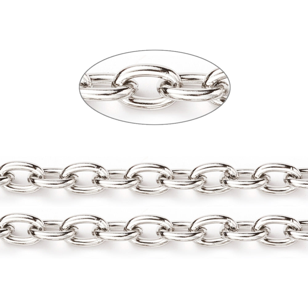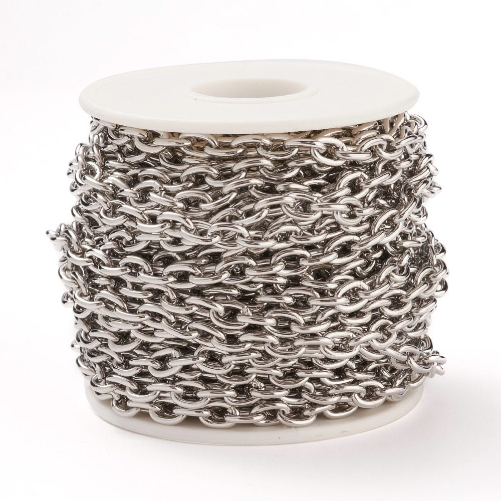 Tarnish Resistant 304 Stainless Steel Cable Chains, Unwelded, Stainless Steel Color Sold by The Meter