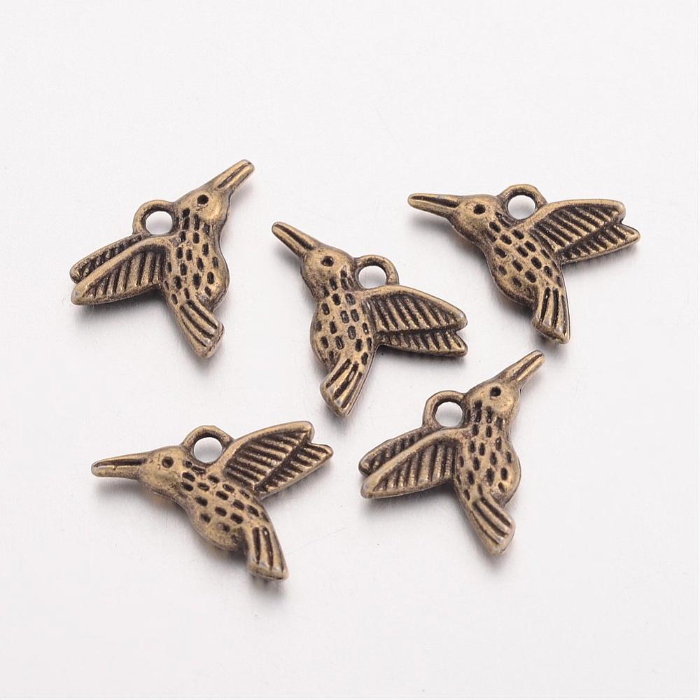 Tibetan Style Alloy Hummingbird Charms Pendants, Lead Free & Nickel Free, Antique Bronze 10PACK