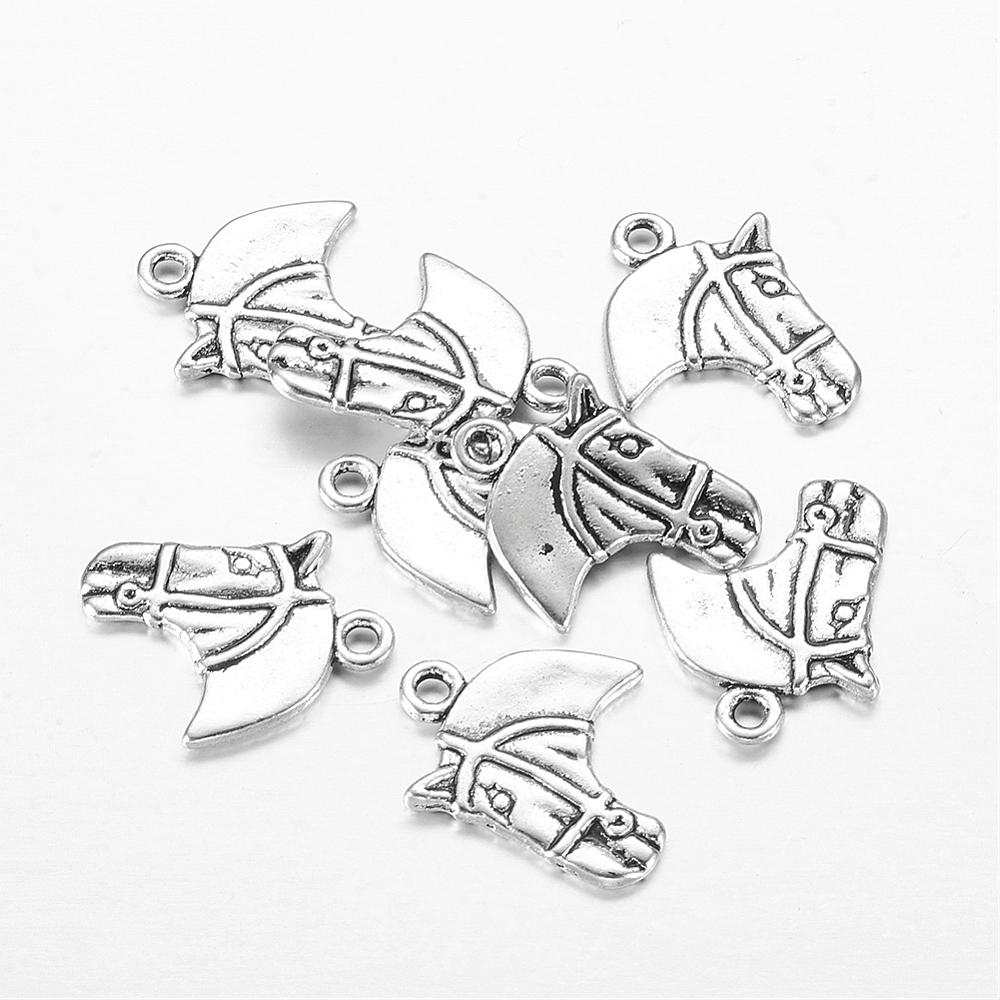 Tibetan Style Alloy Pendants, Horse Head, Lead Free and Cadmium Free, Antique Silver