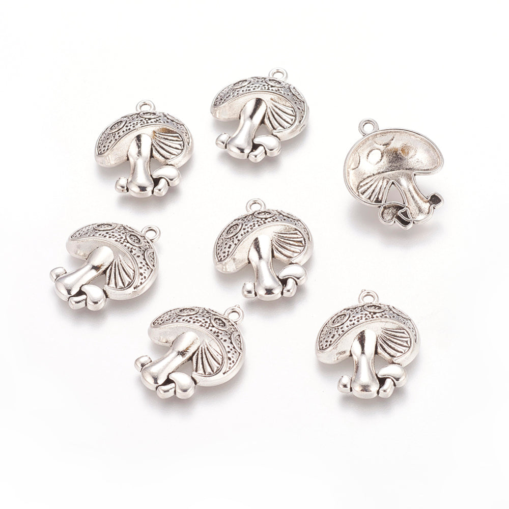 Tibetan Style Alloy Pendants, Lead Free and Cadmium Free, Mushroom, Antique Silver, 22.5x19x5.4mm, Hole: 2mm 5 pack