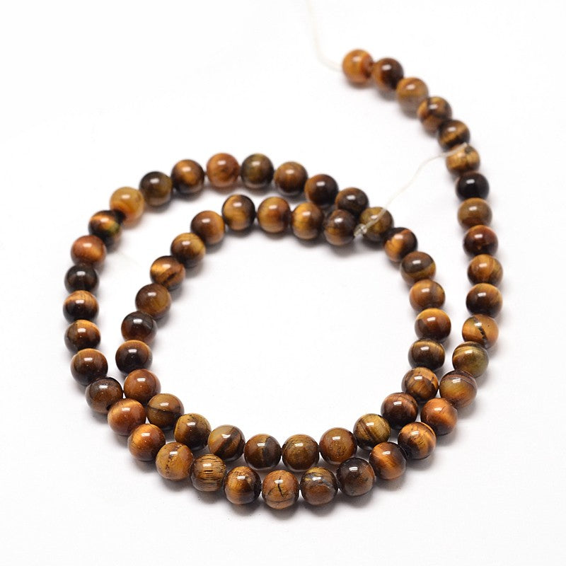 Grade AB Natural Tiger Eye Round Bead Strands Size: about 6~6.5mm diameter, hole: 1mm; about 63pcs/strand, 15.5 inch.