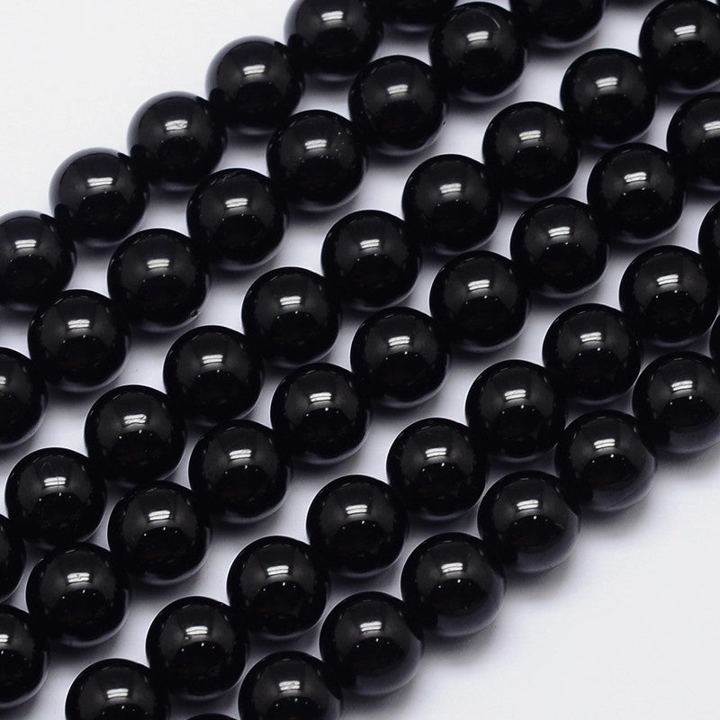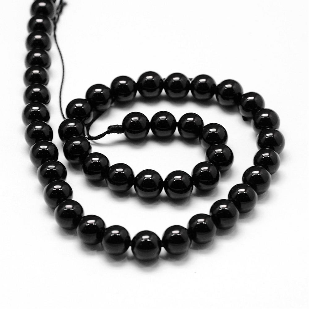 Natural Black Tourmaline Beads Strands, Grade AA, Round, Size: about 8mm in diameter, hole: 1mm; about 48pcs/strand, 15.7 inch.