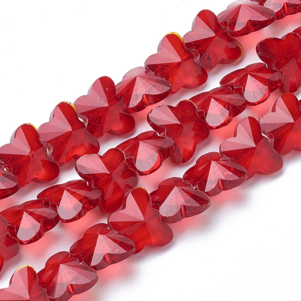 Transparent Glass Beads, Faceted, Butterfly, 12mm Asst Color