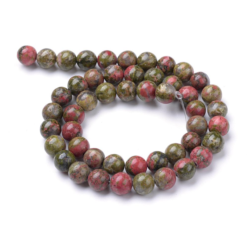 Natural Unakite Beads Strands, Round Size: about 8mm diameter, hole: 1mm; about 46pcs/strand, 14.76 inch(37.5cm).