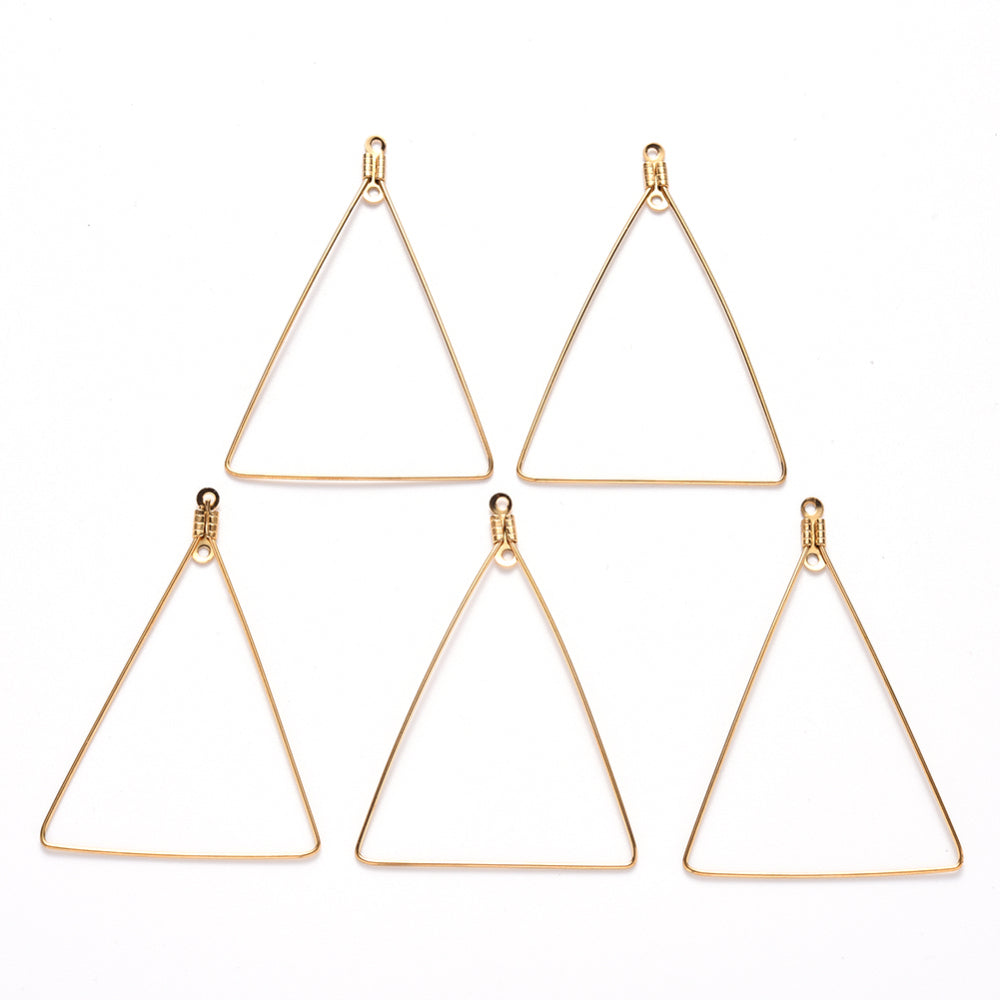 Vacuum Plating 304 Stainless Steel Wire Pendants, Hoop Earring Findings, Triangle, Golden 1 PAIR