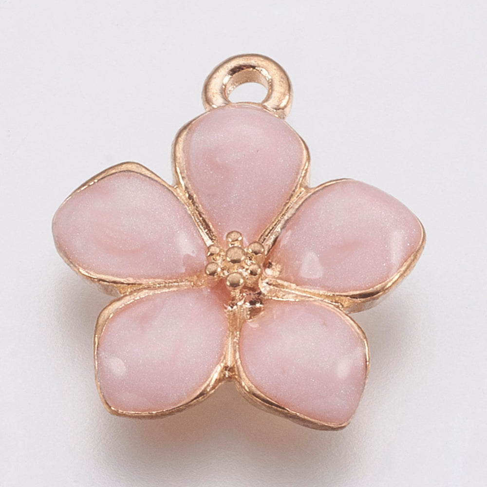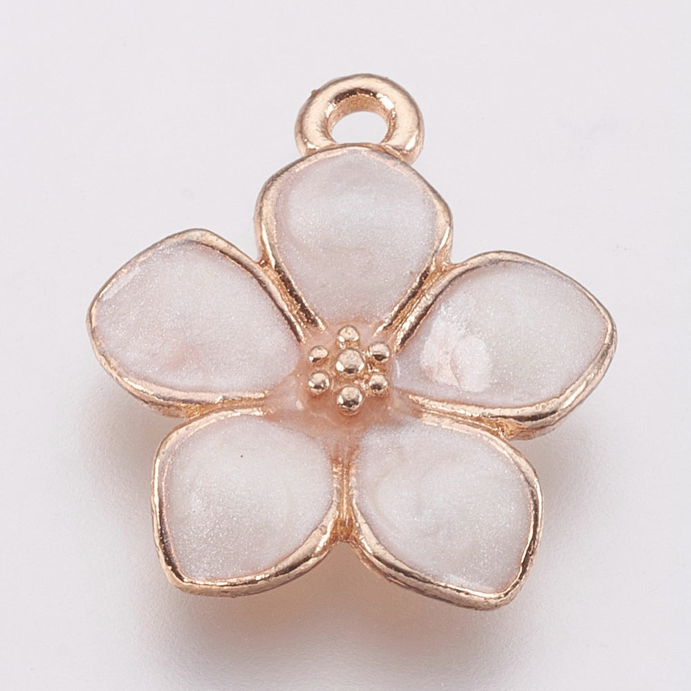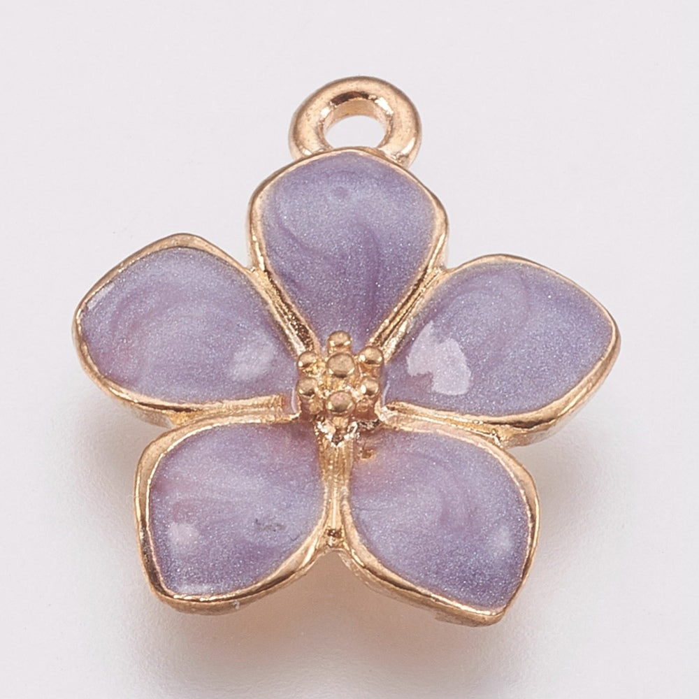 Zinc Alloy Enamel Pendants, Flower, Golden, Blue, Cream, Pink, Purple 2 Pack